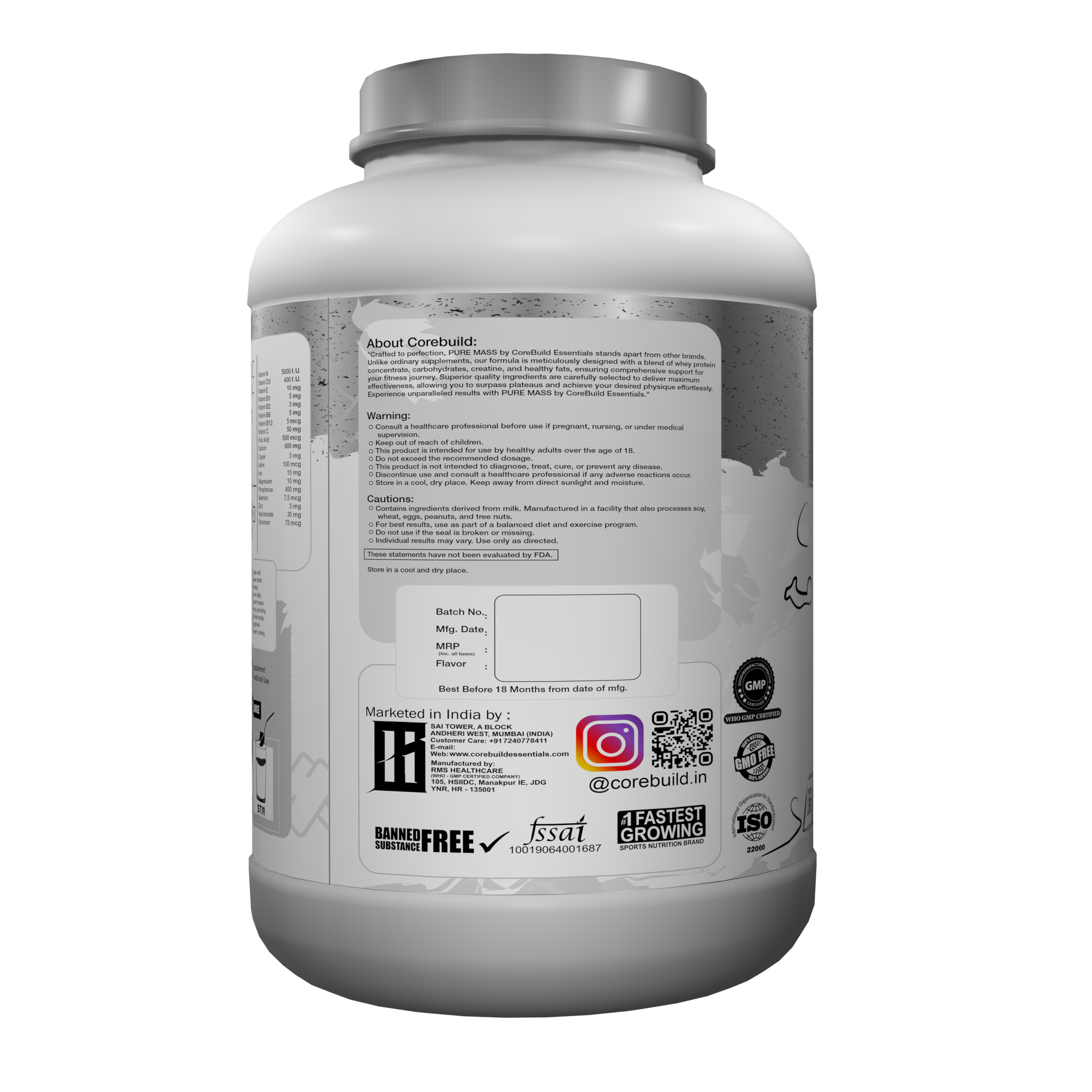 CoreBuild Pure Mass Gainer is your ultimate solution for clean, effective weight and muscle gain. Its advanced blend of Whey Protein Isolate and Concentrate, complex carbohydrates, creatine, and healthy fats fuels intense workouts, muscle recovery, and strength building.